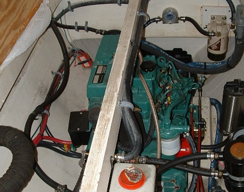 Yes, she has two Volvo 30 horsepower engines, one in each hull.