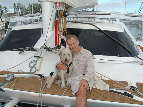 I wish he had. The great dog made a valiant effort coming with me all the way to S. America. But, it was clear that for a large part of that time he lived in terror. Its a noisy place out there with high winds and waves buffeting the boat. So, before I crossed the Pacific, I flew him home to Vermont where he spent a lovely 3 years with my sister Lesley and 3 female standard poodles.....much better than a boat!