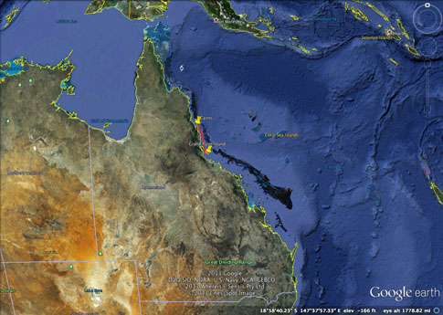 Ah I remember it well - a long night. One might think that it would have been somewhere out in mid ocean...but not at all....instead it was quite near land, actually, land on both sides and that was the problem. It was in the narrow passage running north/south between the Great Barrier Reef and the east coast of Australia, a passage that is used heavily by the big tankers and... reefs everywhere. One must NOT end up navigating that channel at night - its simply too perilous in the best of circumstances but to do it singlehanded in a small vessel? Totally fraught.